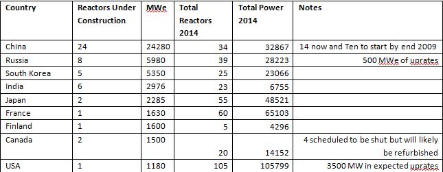 Building, planning, and proposing has doubled in two and a half years. You will not see the impact on the number of reactors operating for a few years yet, though, but the ramping has clearly begun. This renaissance is not only driven by China, btw - in January 2007 there were 17 countries that were ordering/planning and now there is 26.