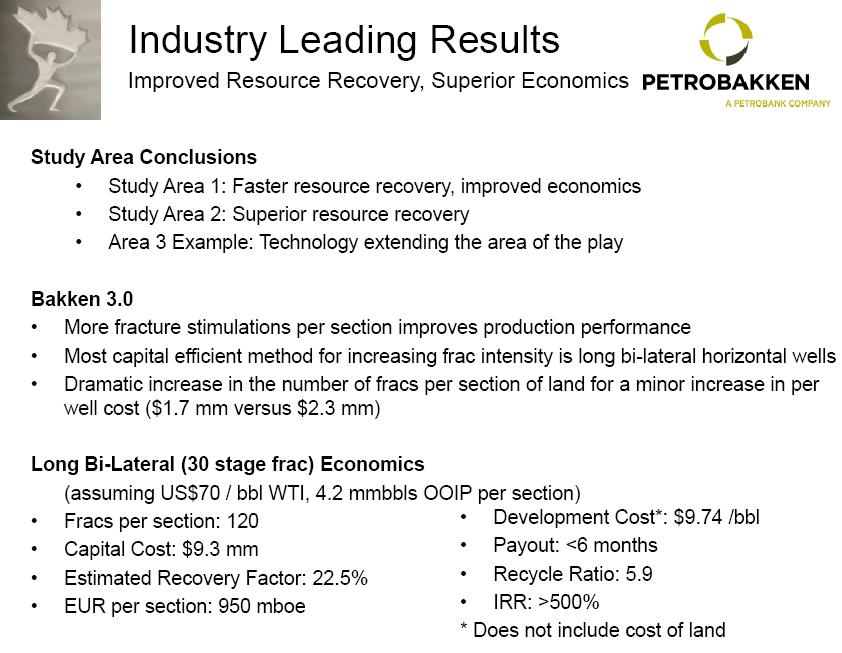 There are slides showing the latest economics of Bakken drilling in Canada and results which show new techniques are reducing the speed of the decline in well production.