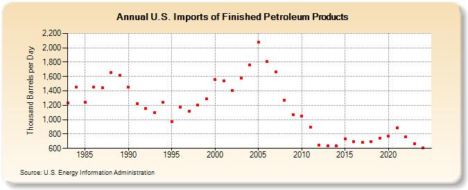 Products from 2000 - 2009 rise from 2.4 Million bpd peaking in 2005 at 3.6 Million bpd,