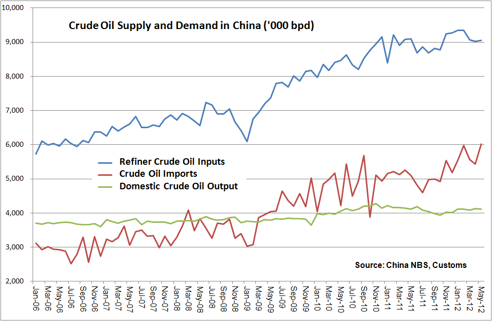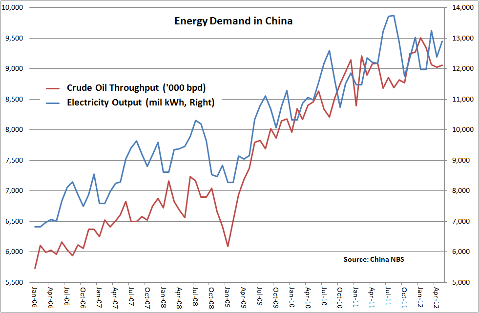 This means that the great energy supply paradox of 2012 continues - that is, US refiners struggle to keep up with demand even in a lackluster economy. While refinery utilization, at 92%, fell from last week’s 92.6%, it is near the highest levels for the last few years. Utilization is also effectively near the maximum capacity possible when the outages at the largest US refinery, Motiva, and major renovations at some Pennsylvania refiners (for example, the Delta airline refinery acquisition) are considered.