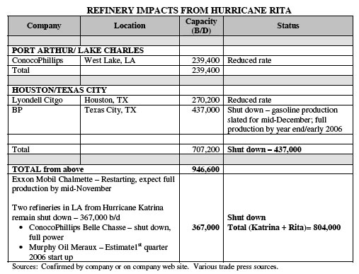 A number of non-operating plants with a total capacity of 0.90 Bcf/d are operational, but are not active owing to upstream or downstream infrastructure problems or supplies being unavailable. These plants had flowed 0.28 Bcf/d before the hurricanes. A number of the inactive plants are expected to be operating within 2 weeks. Based on updated data, the incremental available capacity at that time would be 2.30 Bcf/d with pre-hurricane flow of 1.06 Bcf/d. Based on updated company information, pre-hurricane flow volumes indicate that the average utilization of the non-operating plants was roughly 59 percent.